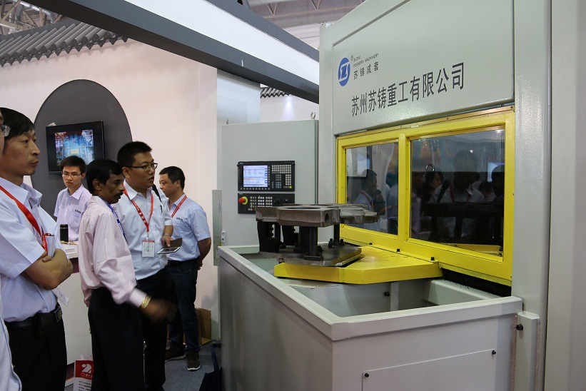 此次博覽會,成套公司主要展出靜壓造型自動線模型。由于能夠直觀的了解靜壓線造型自動線的整體布局情況,在博覽會現(xiàn)場吸引了大量客戶,許多客戶對我們的靜壓線有了更進一步的了解,并表明了需求的意向。另外,成套公司攜手蘇鑄重工公司,展出了新研發(fā)的磨削設(shè)備。在現(xiàn)場不僅保持了4天時間的連續(xù)運轉(zhuǎn),并且在重要客戶來訪時,現(xiàn)場打磨鑄件,展出的效果相當(dāng)。新研發(fā)的磨削機,在博覽會現(xiàn)場得到了同行及用戶的高度認可,許多用戶都表現(xiàn)出大量的采購需求。